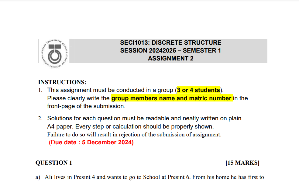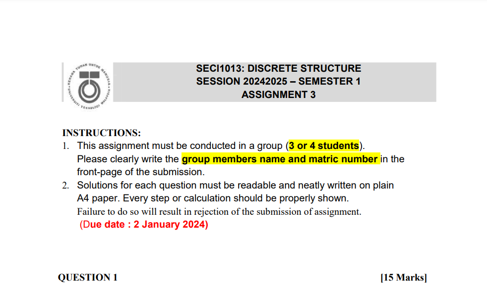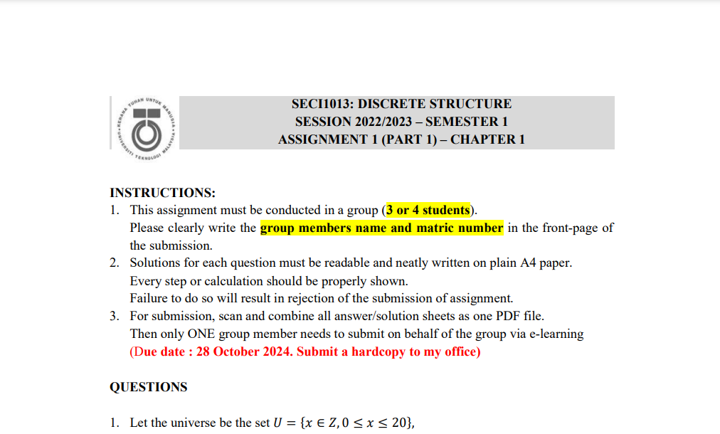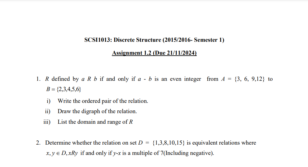 Assignment 1 is a combination of Chapter 1: Set Theory and Logic, and Chapter 2: Relationd and Functions.